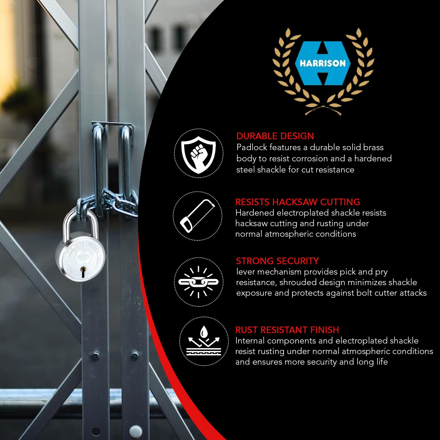 This high-security padlock is ideal for various uses, including locker cabinets, home main doors, industrial godowns, and gates. Its versatile design is compatible with a wide range of locking mechanisms, making it an excellent choice for securing storage units, gates, and other entry points.