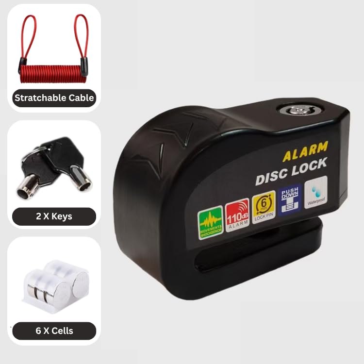 Protect your motorcycle, scooter, or bicycle with the Disc Brake Lock, an ultra-secure and reliable anti-theft solution. Designed to lock the disc brake, this heavy-duty security lock ensures that your vehicle remains safe and secure wherever you park it. High-Security Anti-Theft Lock: This disc brake lock provides robust protection against theft. Simply lock the disc brake to secure your vehicle and deter potential thieves. Ultra Loud 110db Alarm: The integrated 110db alarm system instantly alerts you if someone attempts to tamper with or move your vehicle. The loud alarm sound acts as a powerful deterrent, keeping your property safe. Durable Metal Alloy Construction: Built from high-quality metal alloy, this disc brake lock is designed to withstand harsh conditions and resist corrosion. Its solid construction ensures long-lasting durability and reliable performance. Easy and Convenient Operation: The intuitive design of this lock allows for quick and hassle-free operation. Simply click the lock cylinder to secure the disc brake and ensure your vehicle’s safety. Weatherproof Design: This disc brake lock is weatherproof and CE/ROHS certified, making it suitable for use in various weather conditions. Whether it’s raining or shining, you can trust this lock to keep your vehicle secure. Versatile Compatibility: With its universal design, this anti-theft lock is compatible with a wide range of vehicles, including motorcycles, scooters, and bicycles. The 6mm pin keys ensure a secure fit for different disc brakes. Advanced Anti-Theft Features: Equipped with a shake, shock, move, or vibrate sensor, this disc brake lock offers advanced anti-theft protection. Any attempt to tamper with the lock triggers the alarm, providing an extra layer of security.