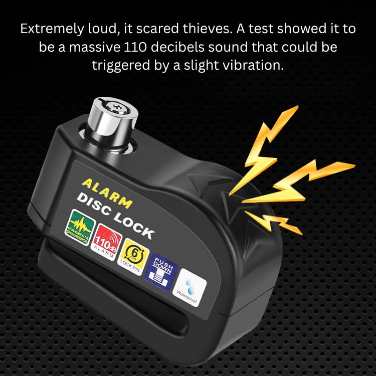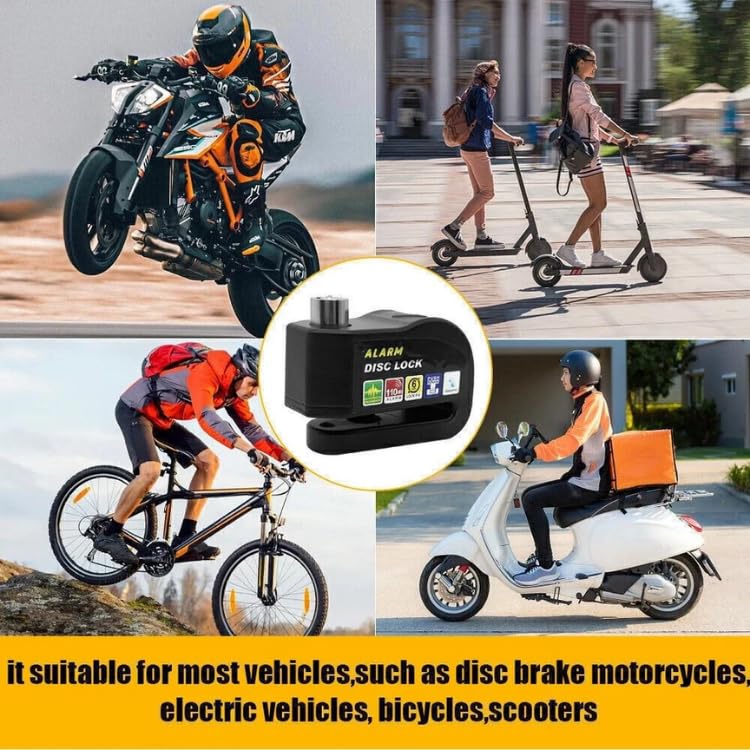 Secure your scooter or bike with the alarm of the disc brake lock. Its 110 alarm sound and waterproof design effectively deter theft and alert people nearby